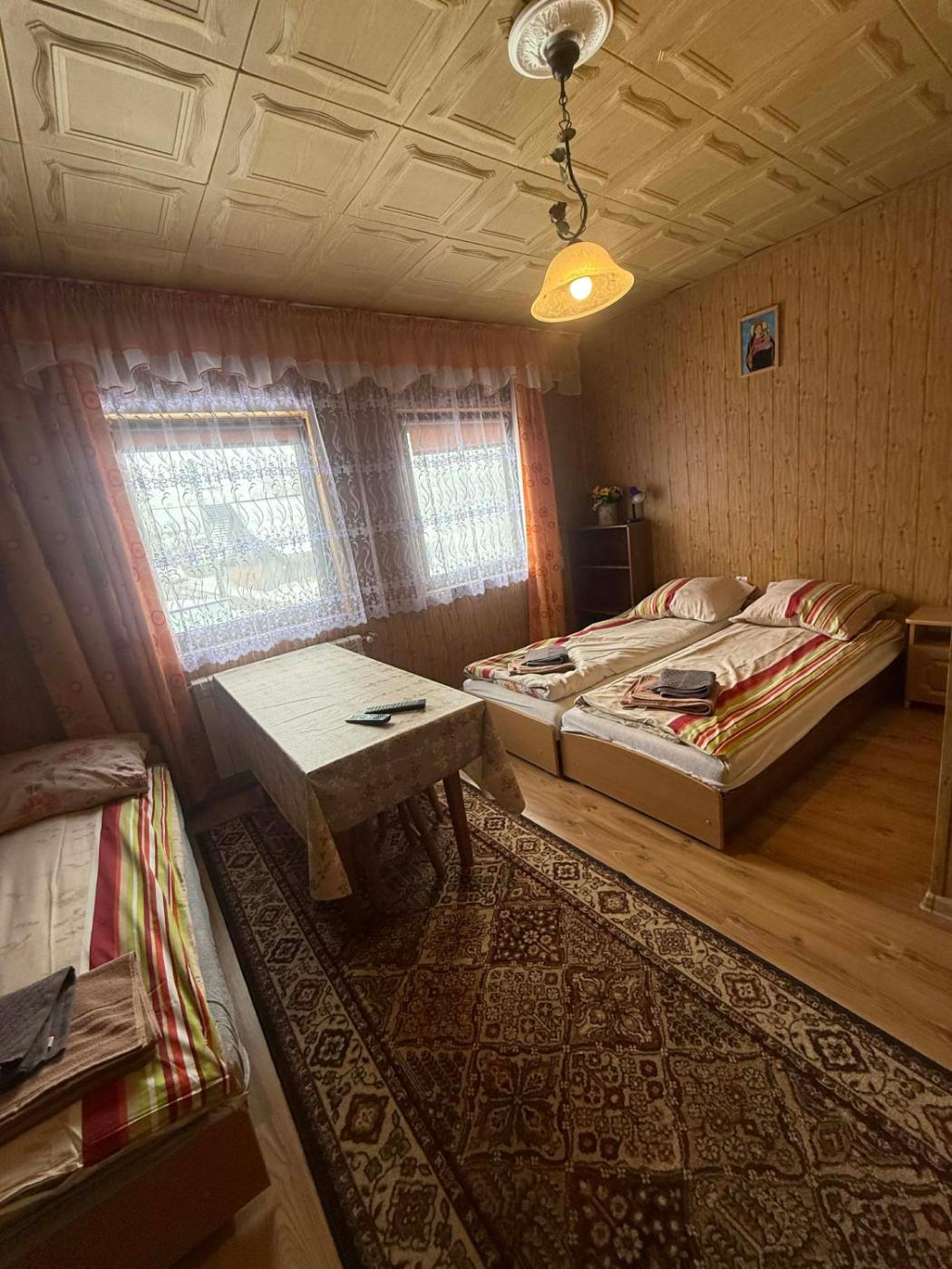 Pokój Czteroosobowy. The quadruple room provides a tea and coffee maker and a dining area, as well as a private bathroom featuring a shower. The unit offers 4 beds. Pokój Czteroosobowy - 4 osobowy. Powierzchnia pokoju ok.: 16 mkw.