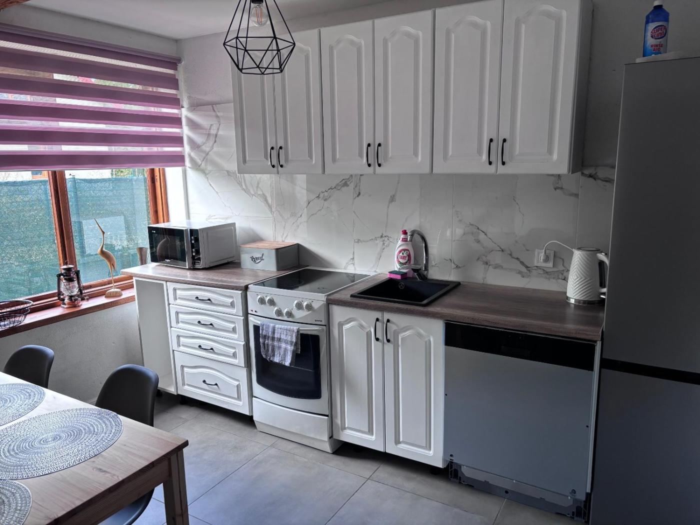 Pokój Czteroosobowy z łazienką. Ten pokój czteroosobowy mieści prywatną łazienkę z prysznicem oraz suszarką do włosów. W dobrze wyposażonej kuchni przygotowano lodówkę, płytę kuchenną, przybory kuchenne i zmywarkę do naczyń. Goście zakwaterowani w tym pokoju czteroosobowym mogą korzystać z grilla. W tym pokoju czteroosobowym z widokiem na ogród znajduje się ponadto część wypoczynkowa, pralka, zestaw do parzenia kawy i herbaty oraz telewizor z płaskim ekranem i dostępem do kanałów kablowych. W tej opcji zakwaterowania do dyspozycji gości są 2 łóżka. Pokój Czteroosobowy - 6 osobowy. Powierzchnia pokoju ok.: 29 mkw. ;